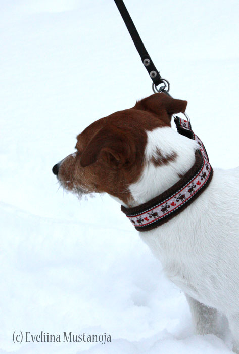 Ricolle piti kuulemma tulla joku erillainen panta, mutta emäntä tuli niitä nykertäessään toisiin aatoksiin. Rico saiki tommosen poropannan, ku se on tuommonen pikku poro. Myöskään Rico ei juuri välitä poseerailla.